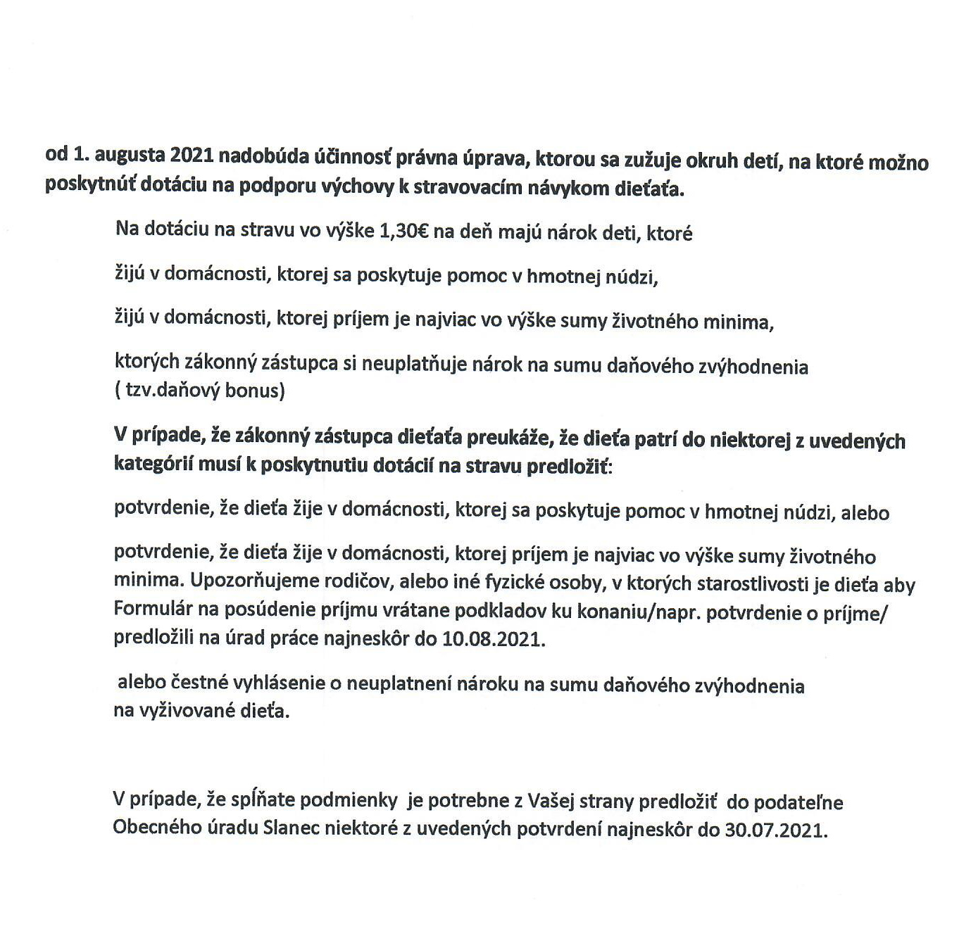 ZMENY V DOTÁCII NA STRAVOVANIE PRE DETI V ZŠ a MŠ